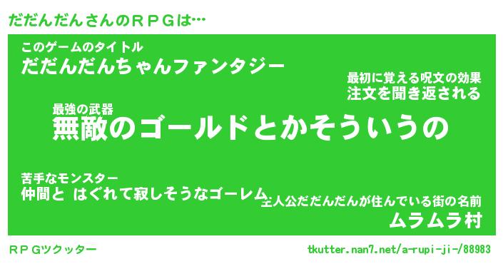 | 胡散臭い通販商品みたいなあだ名 | 『億万長者になれる霊験あらたかなお札…その名も「だだんだん」』 |