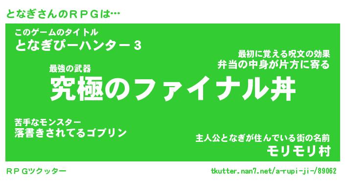 | ポケモン風あだ名 | 『トナチュウ』『トナギダネ』 |