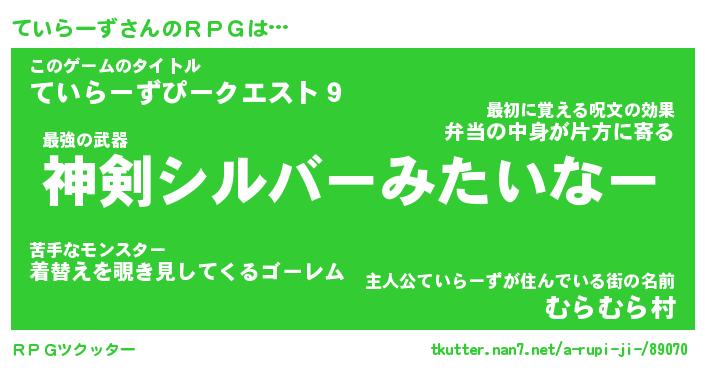 | 男性向けラノベタイトル風あだ名 | 『ていらーずの憂鬱』 |