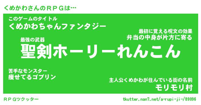 | ファンタジー風あだ名 | 『クメフェル』『エターナルクメカワー』 |