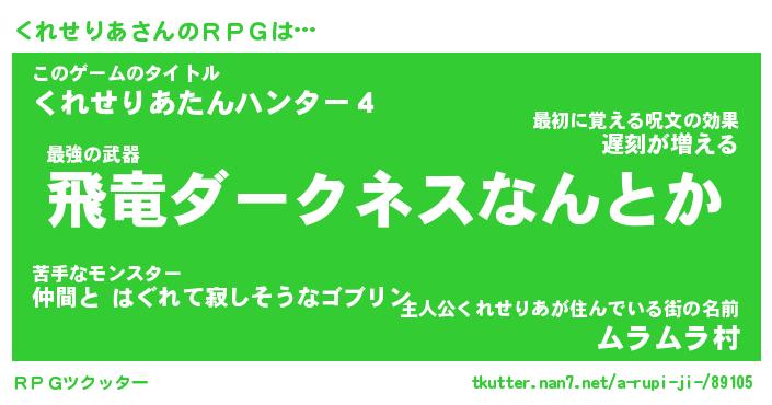 | 伝説のあだ名 | 『封印されし傭兵くれせりあ』 |