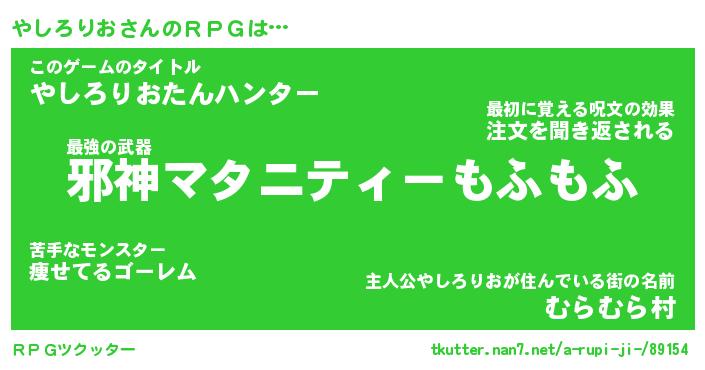 | ファンタジー風あだ名 | 『ヤシフェル』『エターナルヤシロリオー』 |