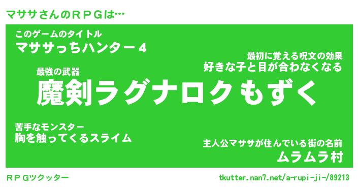 | 男性向けラノベタイトル風あだ名 | 『マササの憂鬱』 |