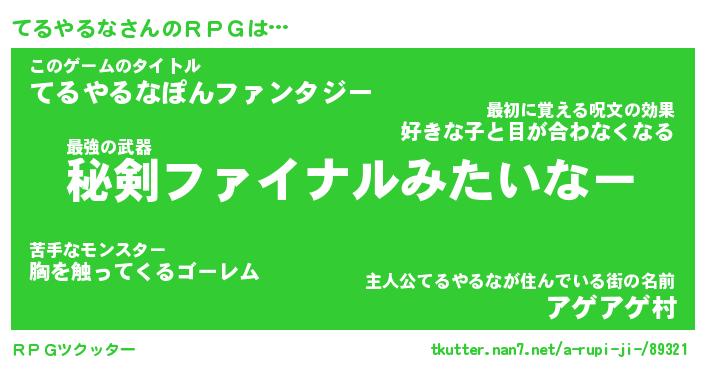 | ファンタジー風あだ名 | 『テルフェル』『エターナルテルヤルナー』 |