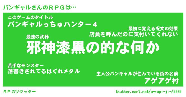 | ファンタジー風あだ名 | 『バンフェル』『エターナルバンギャルー』 |