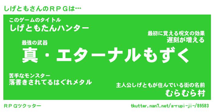 | ツイッター | しげともさんのツイッターID『namakemono_idle』 |