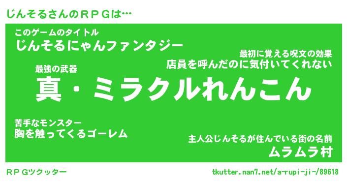 | 意味不明あだ名 | 『ペロリンじんそる』『永久保存じんそる』 |