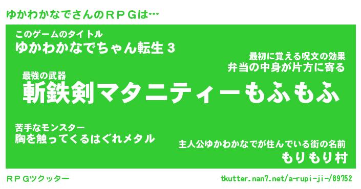 | 胡散臭い通販商品みたいなあだ名 | 『必ず成功する霊験あらたかなお札…その名も「ゆかわかなで」』 |