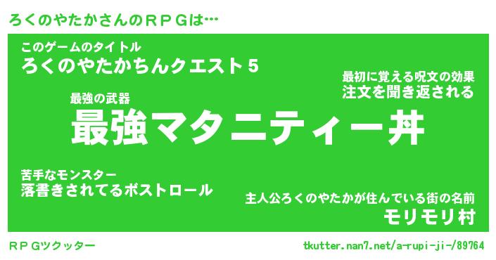 | 胡散臭い通販商品みたいなあだ名 | 『モテモテ間違いなし霊験あらたかなお札…その名も「ろくのやたか」』 |