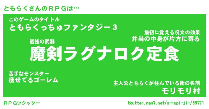 | 伝説のあだ名 | 『伝説の竜騎士ともらく』 |
