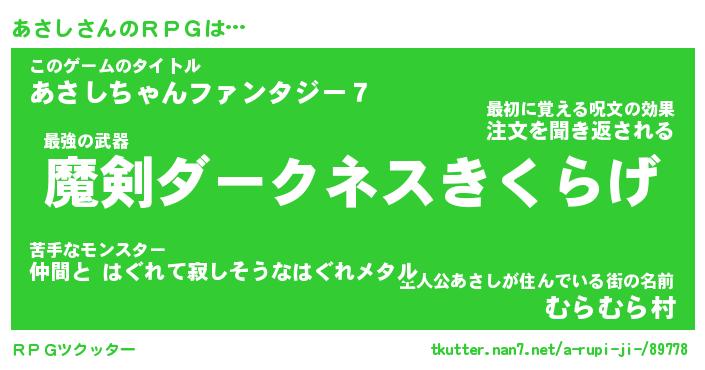 | ファンタジー風あだ名 | 『アサフェル』『エターナルアサシー』 |