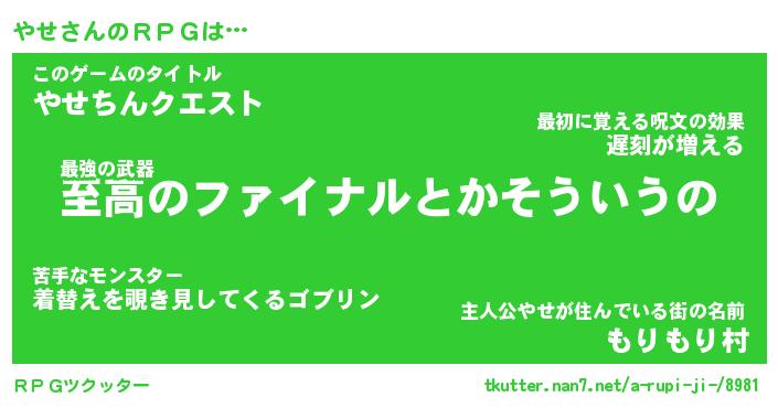 ファンタジー風あだ名 | 『ヤセフェル』『エターナルヤセー』 |