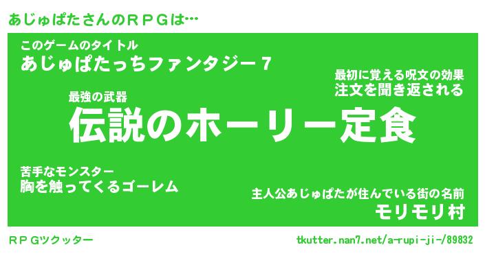 | 男性向けラノベタイトル風あだ名 | 『あじゅぱたの憂鬱』 |