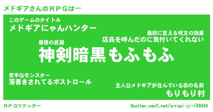 | ヒーロー風カッコイイあだ名 | 『スーパーメドギア』『天弓騎士メド』 |