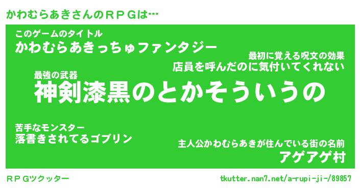 | ヒーロー風カッコイイあだ名 | 『スーパーカワムラアキ』『天弓騎士カワ』 |