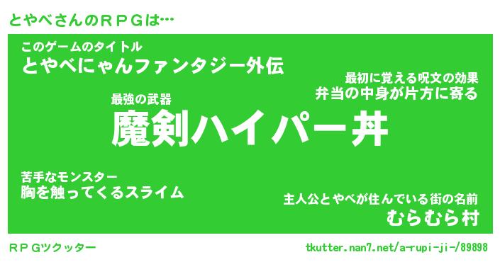 | 男性向けラノベタイトル風あだ名 | 『とやべの憂鬱』 |