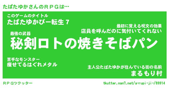 | 胡散臭い通販商品みたいなあだ名 | 『必ず成功するブレスレット…その名も「たばたゆか」』 |