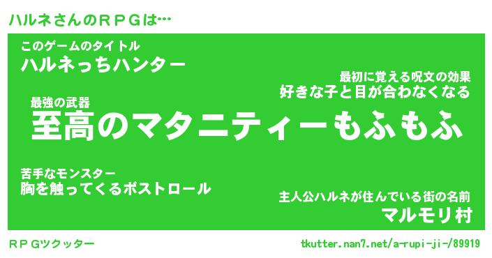 | ファンタジー風あだ名 | 『ハルフェル』『エターナルハルネー』 |