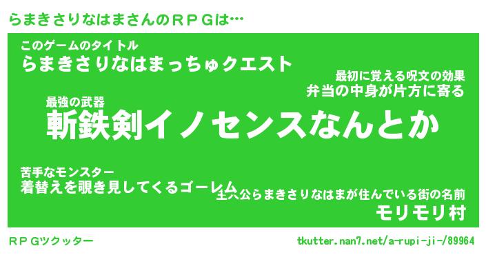 | 男性向けラノベタイトル風あだ名 | 『らまきさりなはまの憂鬱』 |