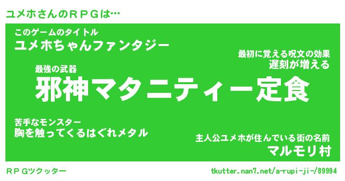 | ヘコむあだ名 | 『ユメっふぃ~』『つくし』 |