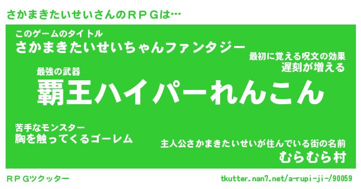 | 男性向けラノベタイトル風あだ名 | 『サカマキタイセイアートオンライン』 |