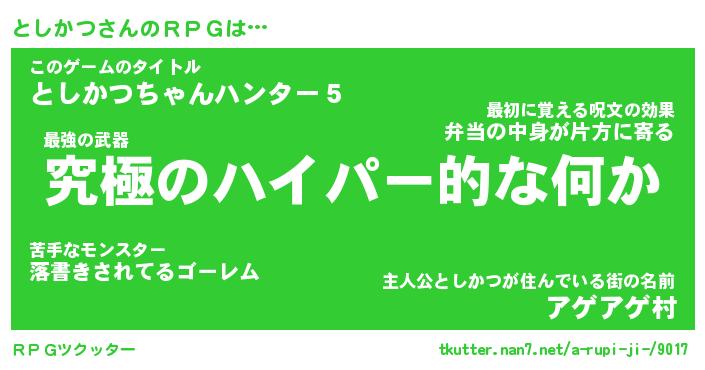 | ファンタジー風あだ名 | 『トシフェル』『エターナルトシカツー』 |