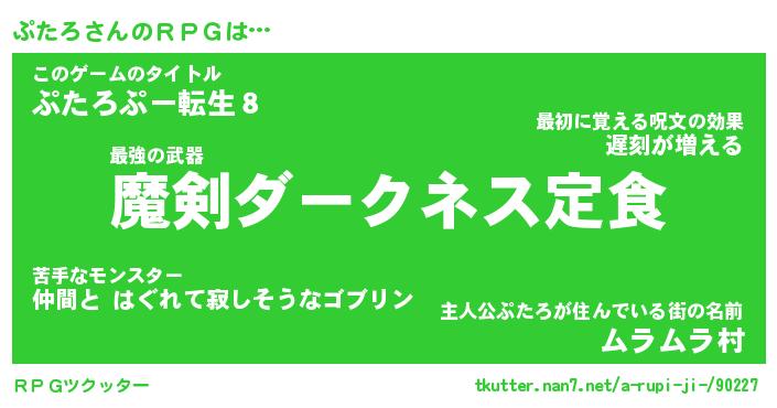 | 男性向けラノベタイトル風あだ名 | 『ぷたろの憂鬱』 |