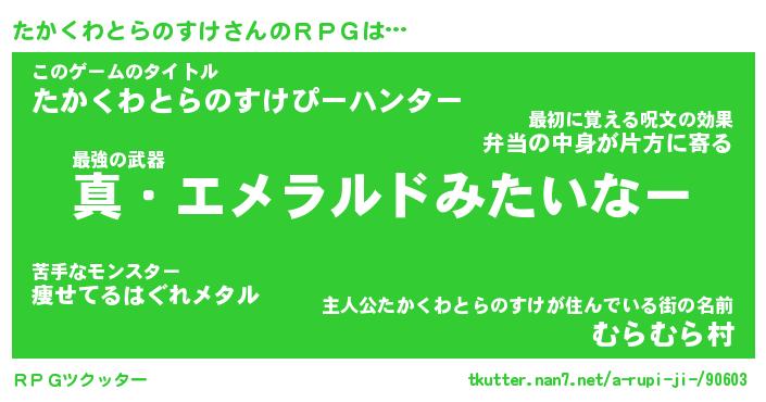 | ヒーロー風カッコイイあだ名 | 『スーパータカクワトラノスケ』 |