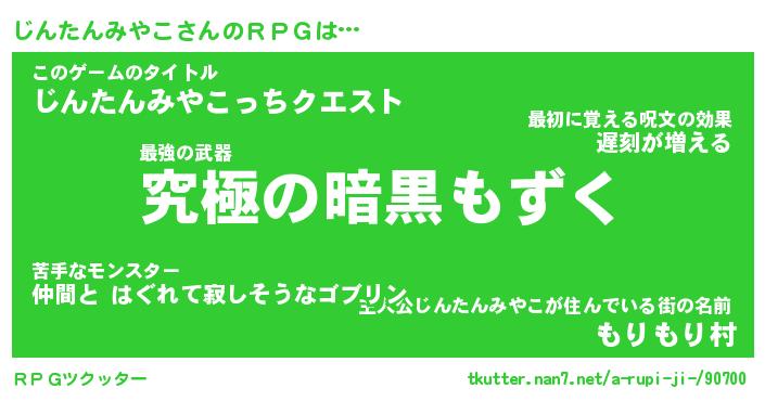 | 男性向けラノベタイトル風あだ名 | 『ジンタンミヤコアートオンライン』 |
