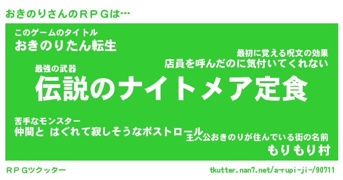 | 男性向けラノベタイトル風あだ名 | 『おきのりの憂鬱』 |
