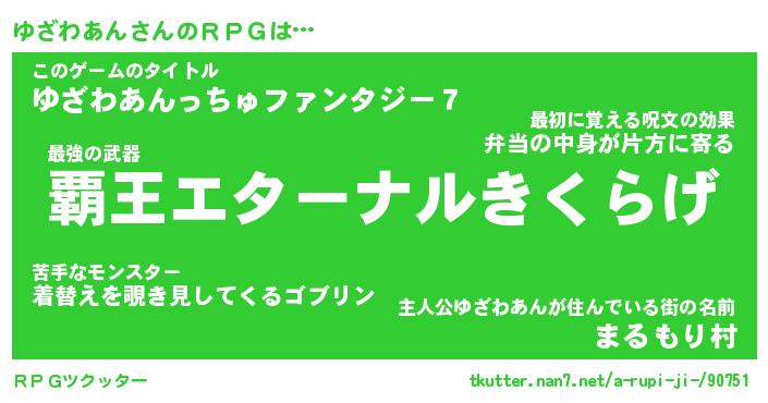| ファンタジー風あだ名 | 『ユザフェル』『エターナルユザワアンー』 |