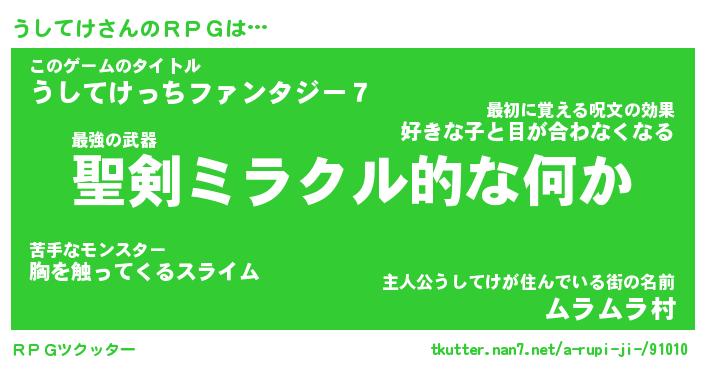 | ヒーロー風カッコイイあだ名 | 『スーパーウシテケ』『幻影騎士ウシ』 |