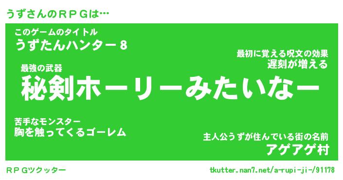 | ファンタジー風あだ名 | 『ウズフェル』『エターナルウズー』 |