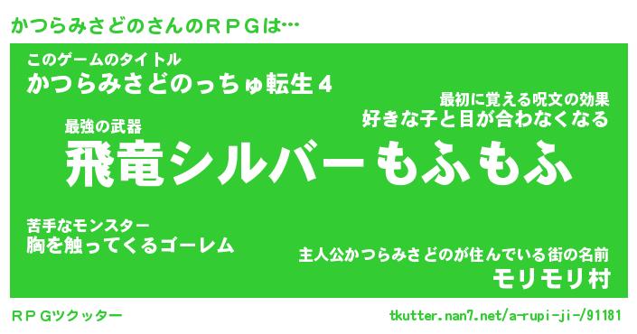 | 伝説のあだ名 | 『封印されし傭兵かつらみさどの』 |