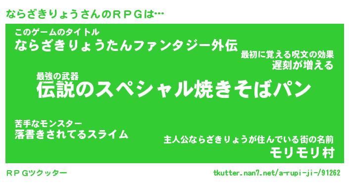 | ヘコむあだ名 | 『ならにー』『つくし』『ならお』 |