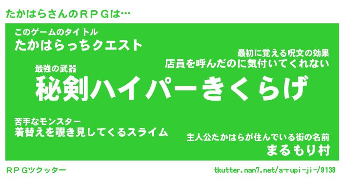| 女子向けラノベタイトル風あだ名 | 『たかはら姫と円卓の騎士』 |