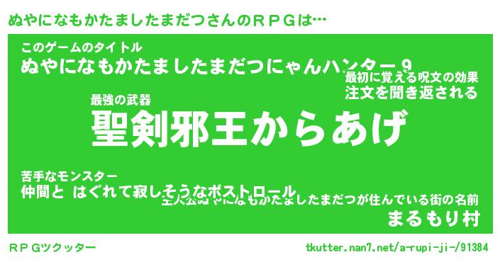 | 女子向けラノベタイトル風あだ名 | 『(仮)ぬやになもかたましたまだつのやんごとなき事情』 |