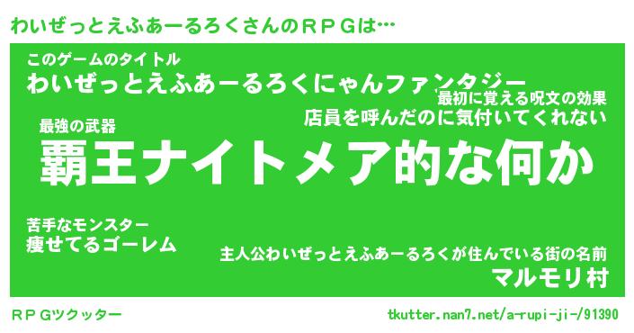 | 男性向けラノベタイトル風あだ名 | 『ワイゼットエフアールロクアートオンライン』 |