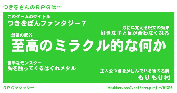 | 男性向けラノベタイトル風あだ名 | 『ツキヲアートオンライン』 |