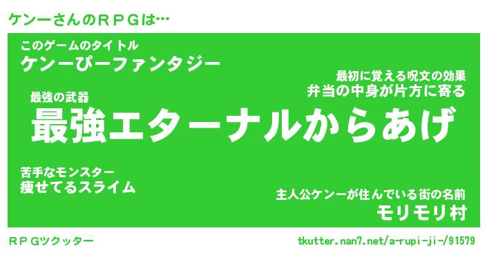 | ファンタジー風あだ名 | 『ケンフェル』『エターナルケンーー』 |