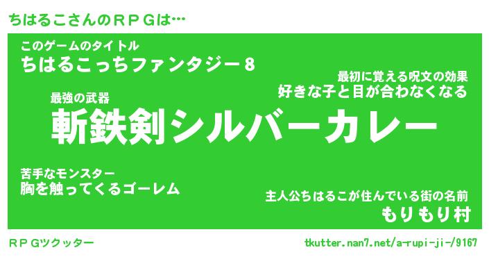| ファンタジー風あだ名 | 『チハフェル』『エターナルチハルコー』 |
