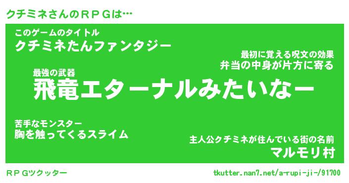 | ファンタジー風あだ名 | 『クチフェル』『エターナルクチミネー』 |