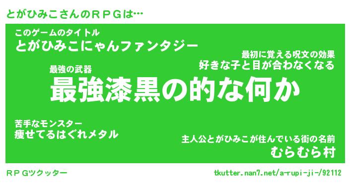 | ヒーロー風カッコイイあだ名 | 『スーパートガヒミコ』『暗黒騎士トガ』 |