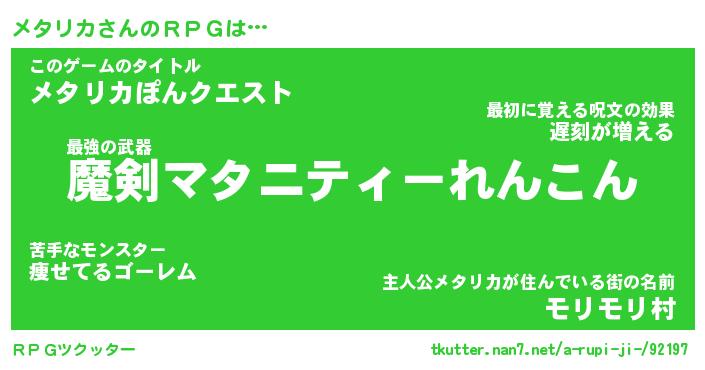 | 男性向けラノベタイトル風あだ名 | 『メタリカの憂鬱』 |