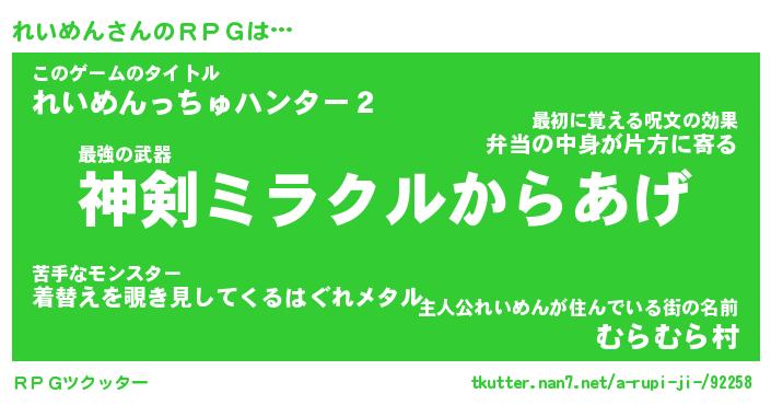 | 料理風あだ名 | 『節約★れいめんと油揚げの玉子丼』 |