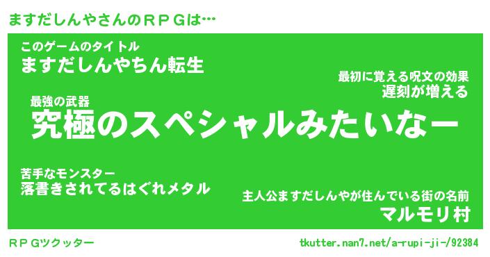 | 男性向けラノベタイトル風あだ名 | 『マスダシンヤアートオンライン』 |