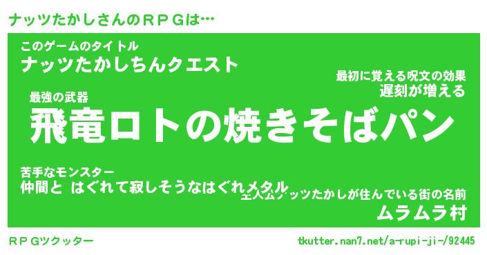 | 伝説のあだ名 | 『封印されし竜騎士ナッツたかし』 |