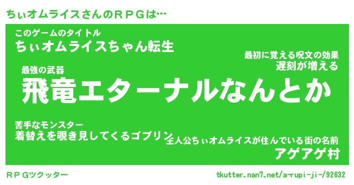 | 伝説のあだ名 | 『封印されし傭兵ちぃオムライス』 |