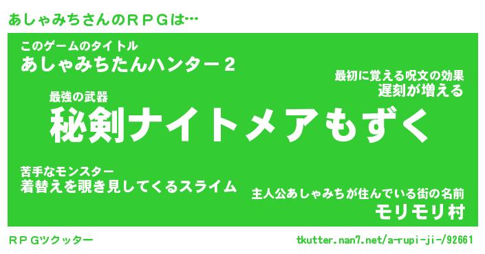 | 伝説のあだ名 | 『伝説のスナイパーあしゃみち』 |