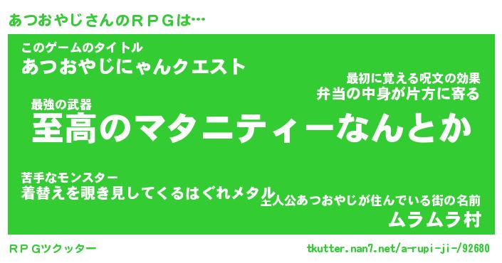 | 胡散臭い通販商品みたいなあだ名 | 『モテモテ間違いなし霊験あらたかなお札…その名も「あつおやじ」』 |